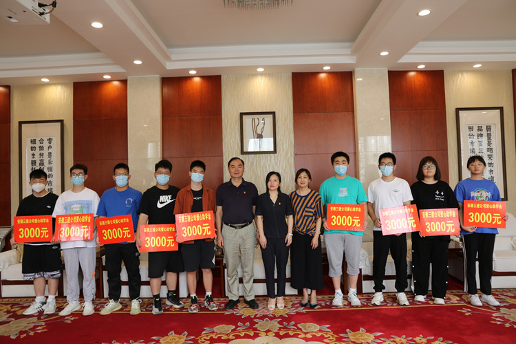 又是一年升学季,在莘莘学子即将迈入大学校园、开启人生逐梦新征程之际,为贯彻落实“我为群众办实事”活动,彰显国企担当,更好地帮助困难职工家庭子女解决上学问题。8月24日上午,安徽三建开展年度“爱心助学”活动,向9名困难职工家庭的子女颁发了爱心助学金。公司党委副书记、工会主席黄丽春,党委委员、纪委书记李跃进参加捐赠仪式。